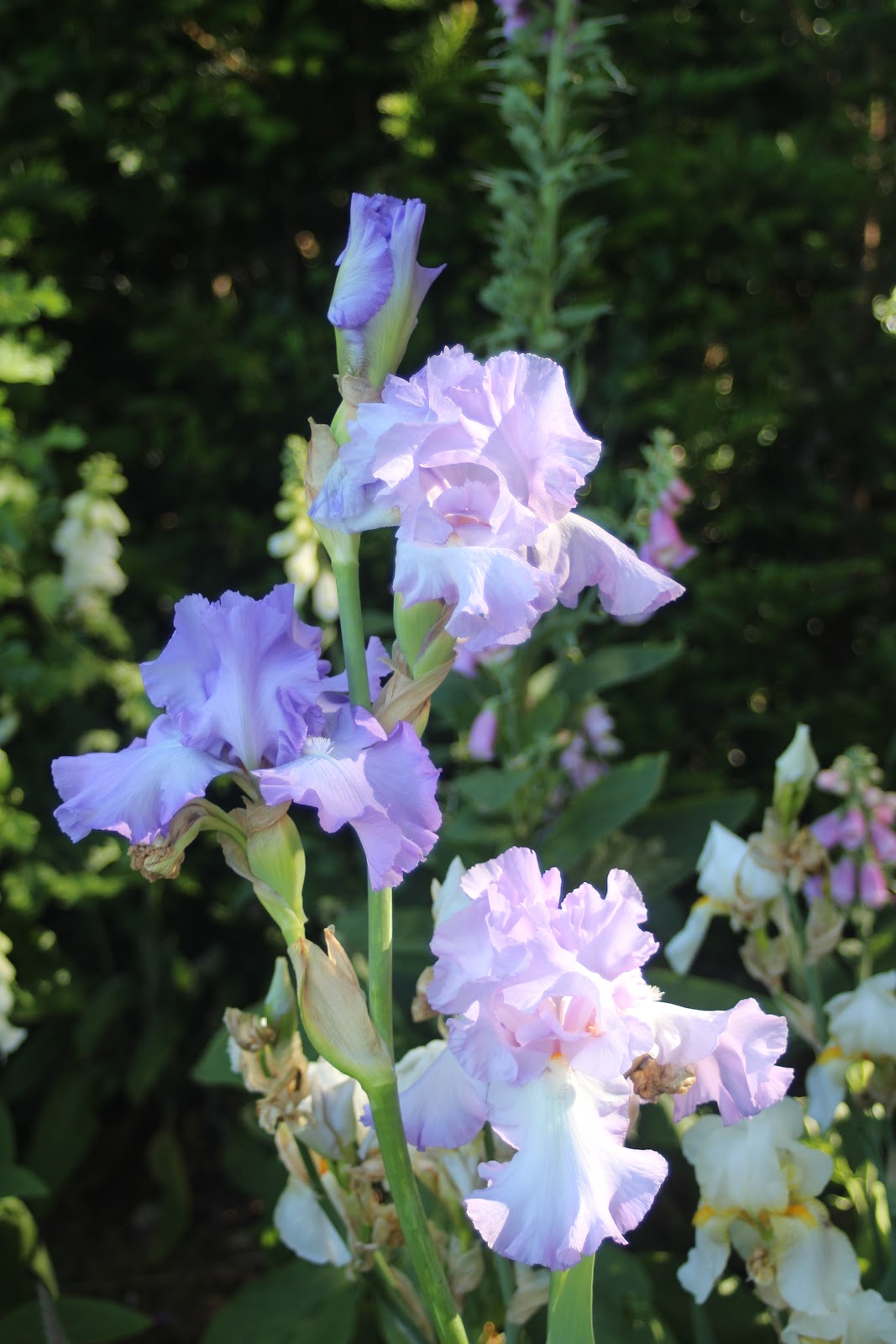 The iris are still flowering. This week Mary Francis has opened up with lavender-blue petals. Very soft and pretty.